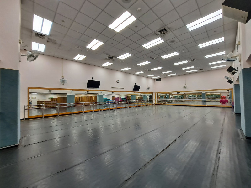 韻律教室之地面鋪設浮式枕木楓木地板,其上再增設舞蹈專業之軟墊鋪面,可減少運動傷害。教室內設有音響、電視等視聽設備,並設有三面活動手扶牆及鏡面牆,提供體育教學、各運動代表隊訓練及舞蹈、瑜珈等社團使用。