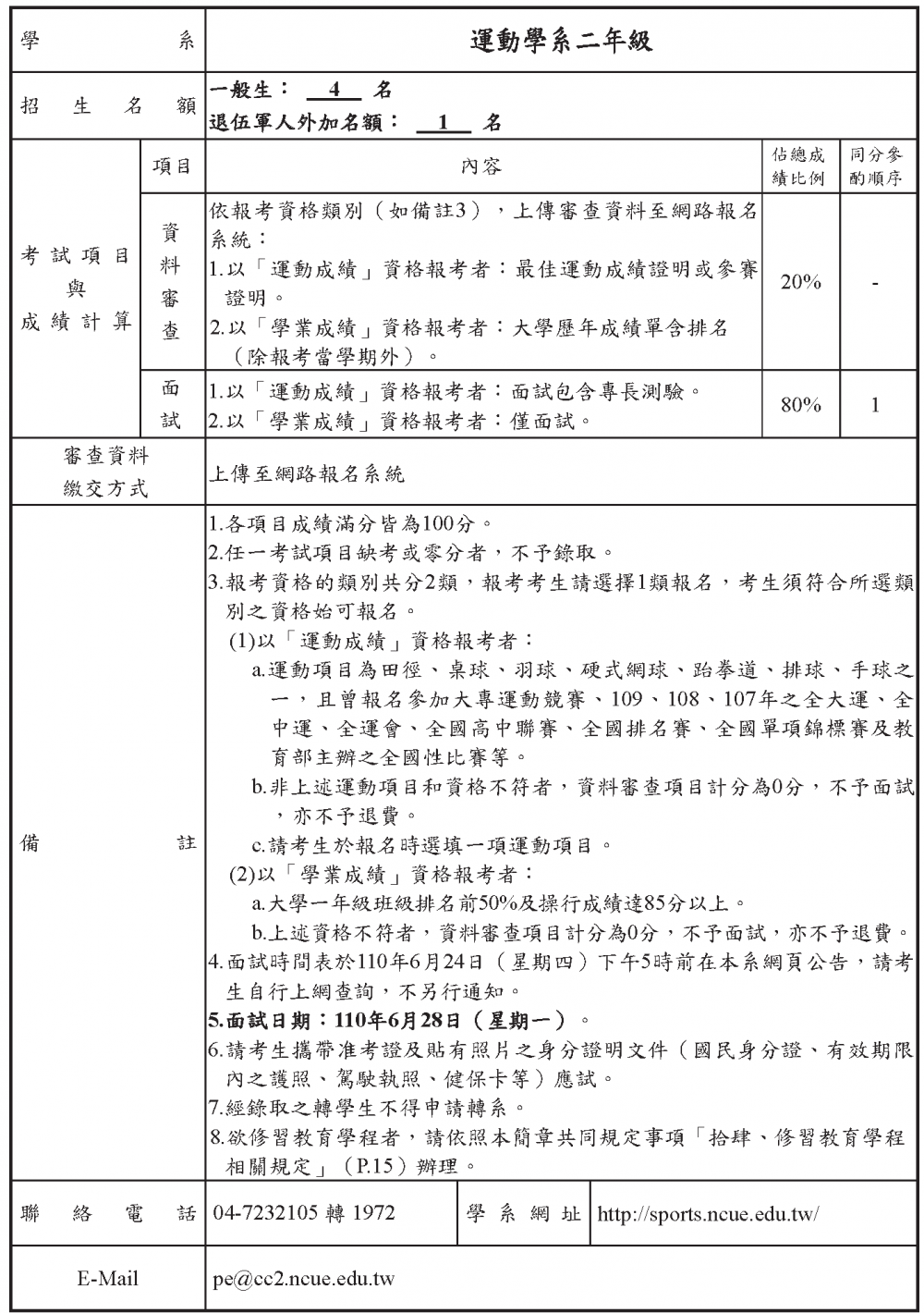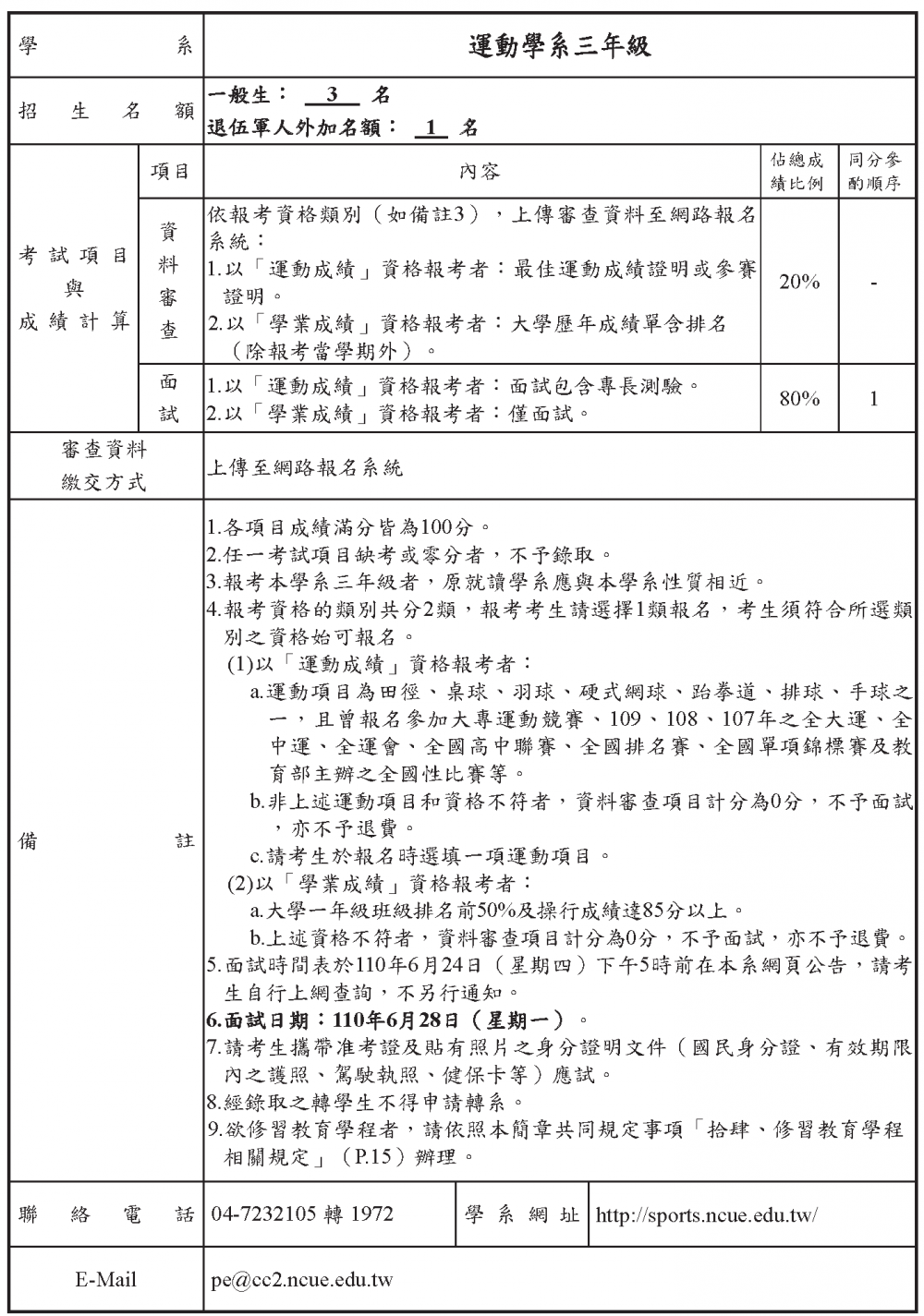 3.因應考試項目調整,審查資料均採資料上傳,如無法上傳,請洽學系改採郵寄方式。