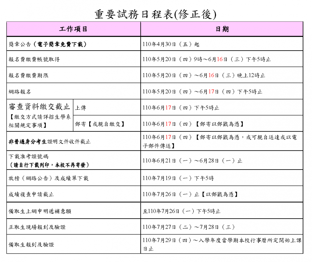 2.因應考試項目調整,延長報名期限至6月17日,相關考試日程詳重要試務日程表(修正後)。