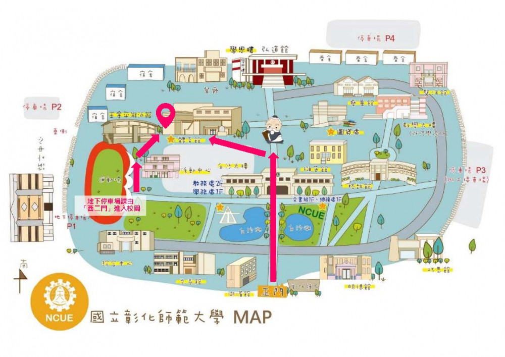 二、報到地點:本校進德校區體育館1F(彰化市進德路1號),請從靠田徑場之入口進入。