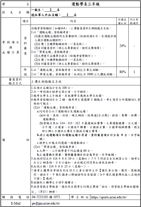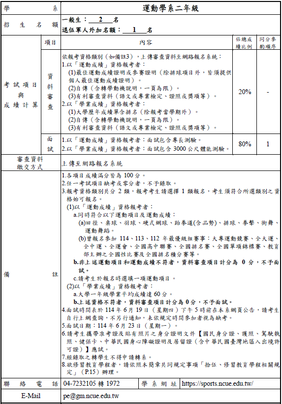 公告本系114學年度第1學期學士班轉學生招生考試簡章