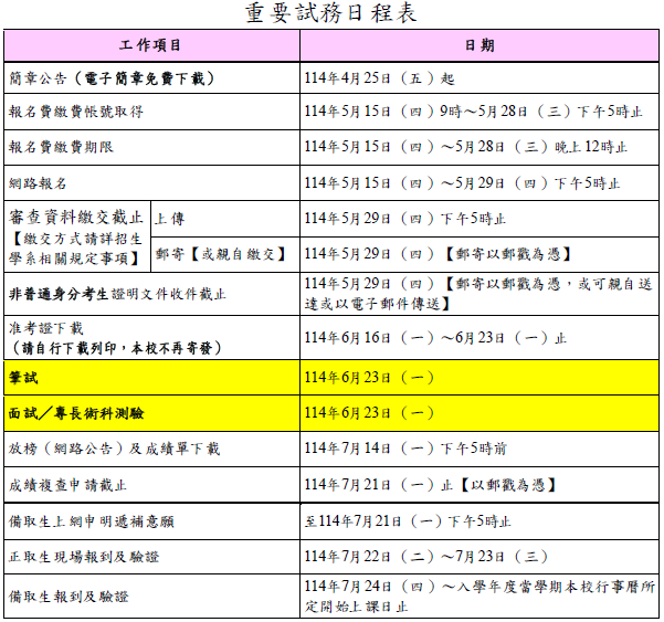 本系114學年度第1學期學士班轉學生招生考試內容如下: